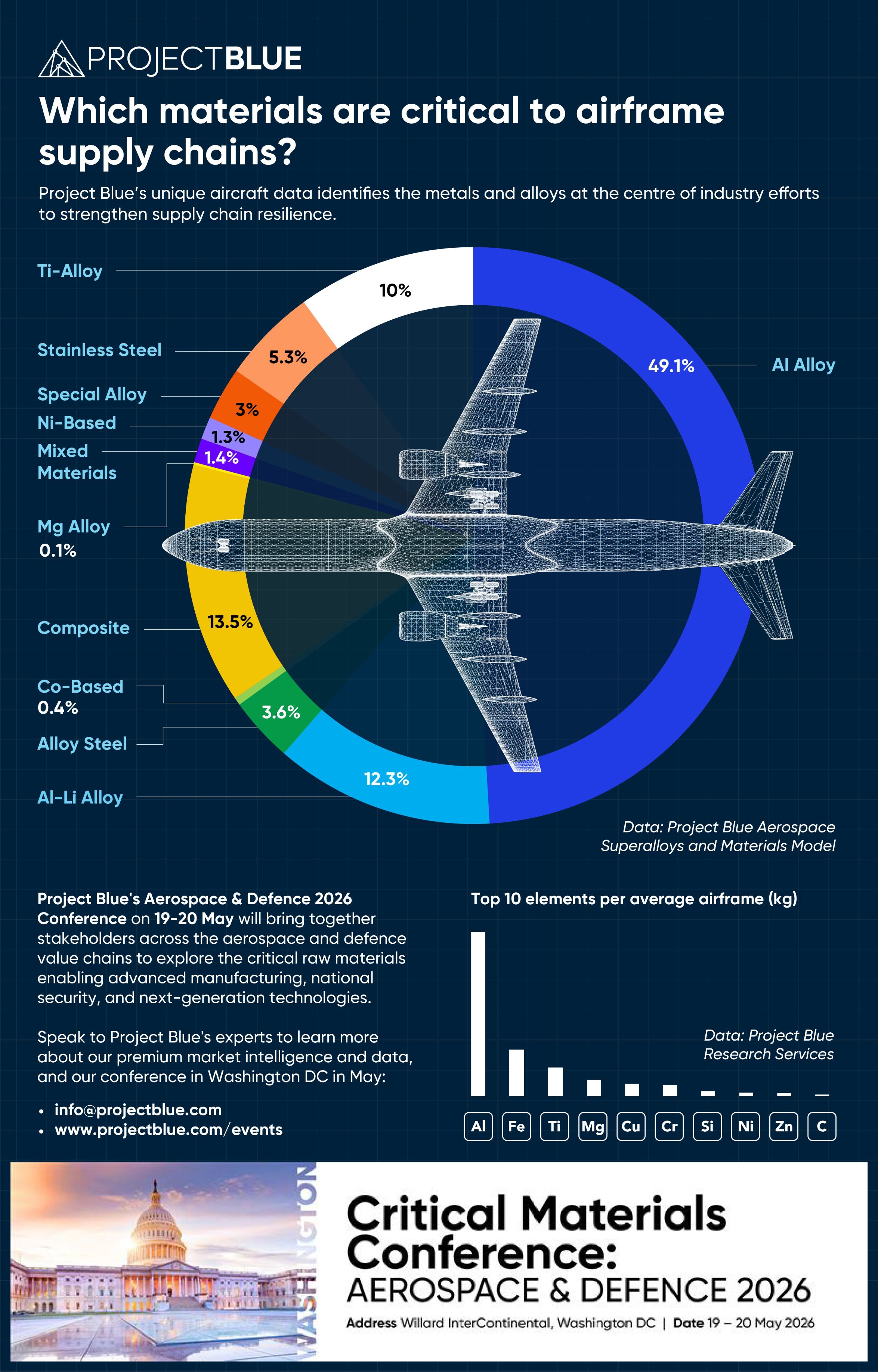 Project Blue's unique aircraft data identifies the metals and alloys at the centre of industry efforts to strengthen supply chain resilience.